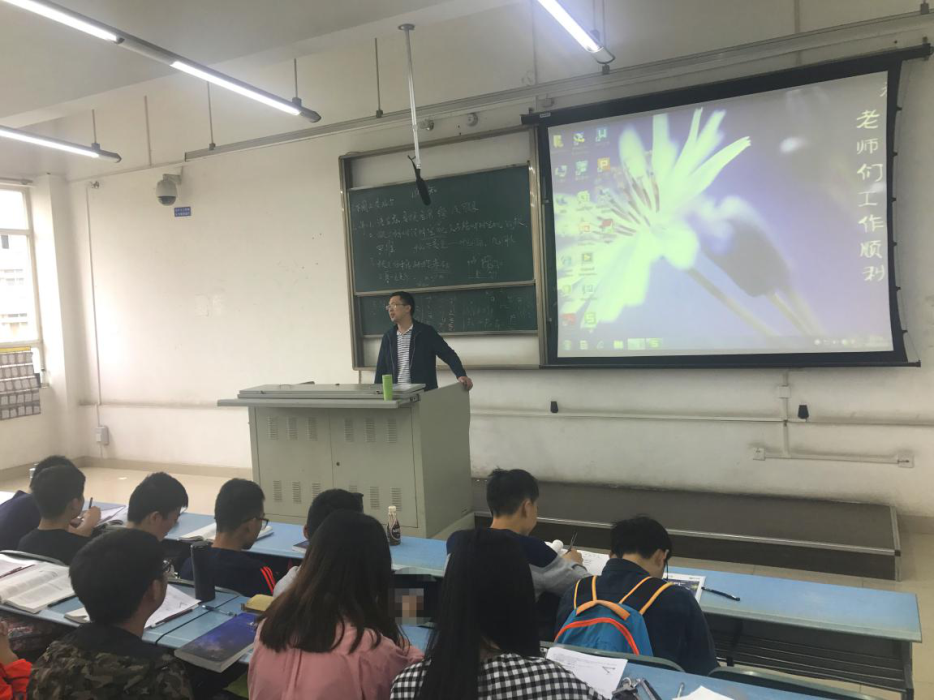党委副书记傅尤刚主讲,2016级辅导员翟琦主持。班会共包括两项议程,首先傅书记从三个方面召开主题班会;接着翟老师组织同学们一起学习《18H