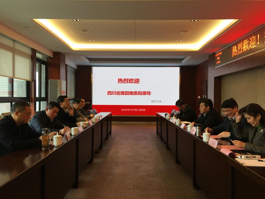 学科专业发展、创新平台、创新团队建设、师资情况作了介绍,强调应关注:深空、深海、深地、深蓝四个方面。李局长详细介绍了煤田地质局的发展,希望在新技术运用、高技术研发、人才培养方面与我院进行全方位的校企合作,望通过合作对四川地质局发展转型时期寻求绿色地质等科技支撑。