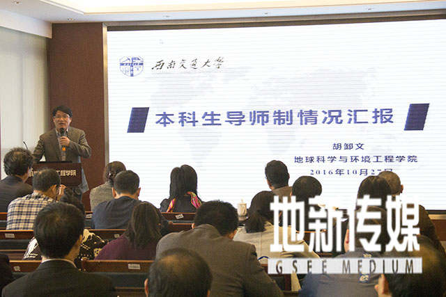 随后,胡卸文副院长介绍了本科导师制有关情况。胡院长讲到,地球科学与环境工程学院在2016年3月7日党政联席会上,通过了《地球科学与环境工程学院本科生导师管理办法》,此管理办法自2015级本科生开始实施。胡院长从导师配备结构、导师工作职责及要求、导师考核及奖励办法、2015级导师配备情况等四个方面介绍了我院导师制的实施情况。