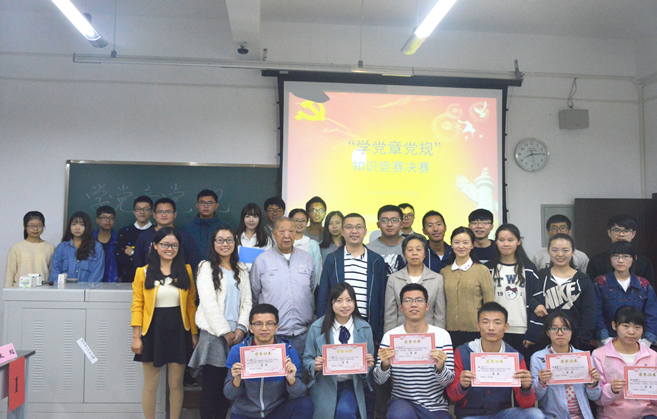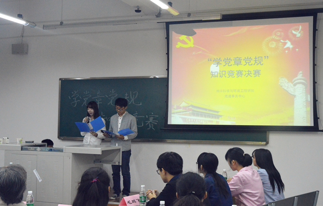 党委主办、党建事务中心承办的“学党章党规”知识竞赛决赛在X9306教室顺利举行。比赛由杨瀚盛、任嘉冰两位同学主持。担任此次比赛评委兼嘉宾的是18H