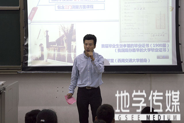 徐柱教授从院系前身——山海关北洋铁路官学堂创办之初(1896年)开设的测量与抄平课程为契点,介绍了测绘专业的悠久历史。从专业多年来做出的卓著贡献、培养出的大批优秀人才、开设以交通特色鲜明的测量专业三个方面阐述了我院测绘专业“声誉卓著”。他还提出了个人对于测绘学科的理解——“感知地球”——由观测系统测得数据再由信息系统进行分析处理。而这一整套运作体系又是跟测绘专业三种细分专业密切相关。在他看来,测绘就是具有信息科学与技术性质的高技术,“其产业前进非常好,诸多环境生态问题都依赖于测绘科学”。而范东明教授则认为测绘是土木和信息之间的桥梁,即土木的信息化,“它是各行各业的渗透”。张建强教授、游为博士等则给大家梳理了学科的专业行知识及基本概念,并指出专业未来可观的就业方向及发展前景。同时,老师们也鼓励同学们要自觉培养学科兴趣、专业感情,在学习过程中多思考,多交流。