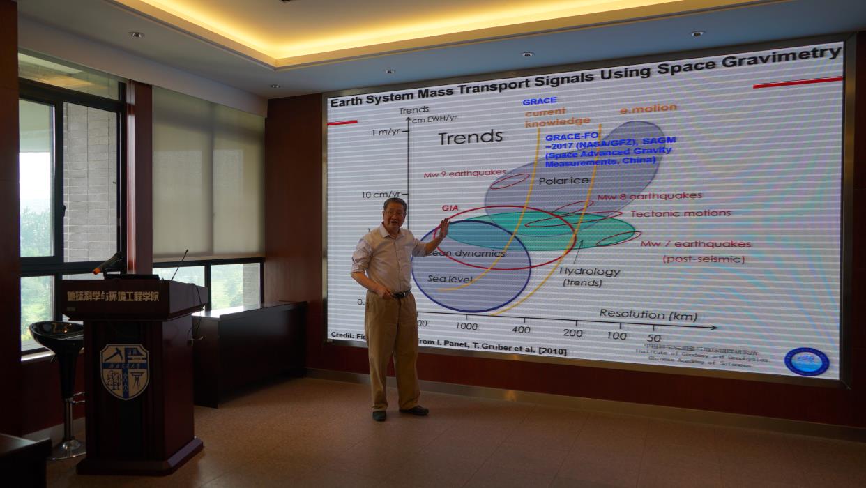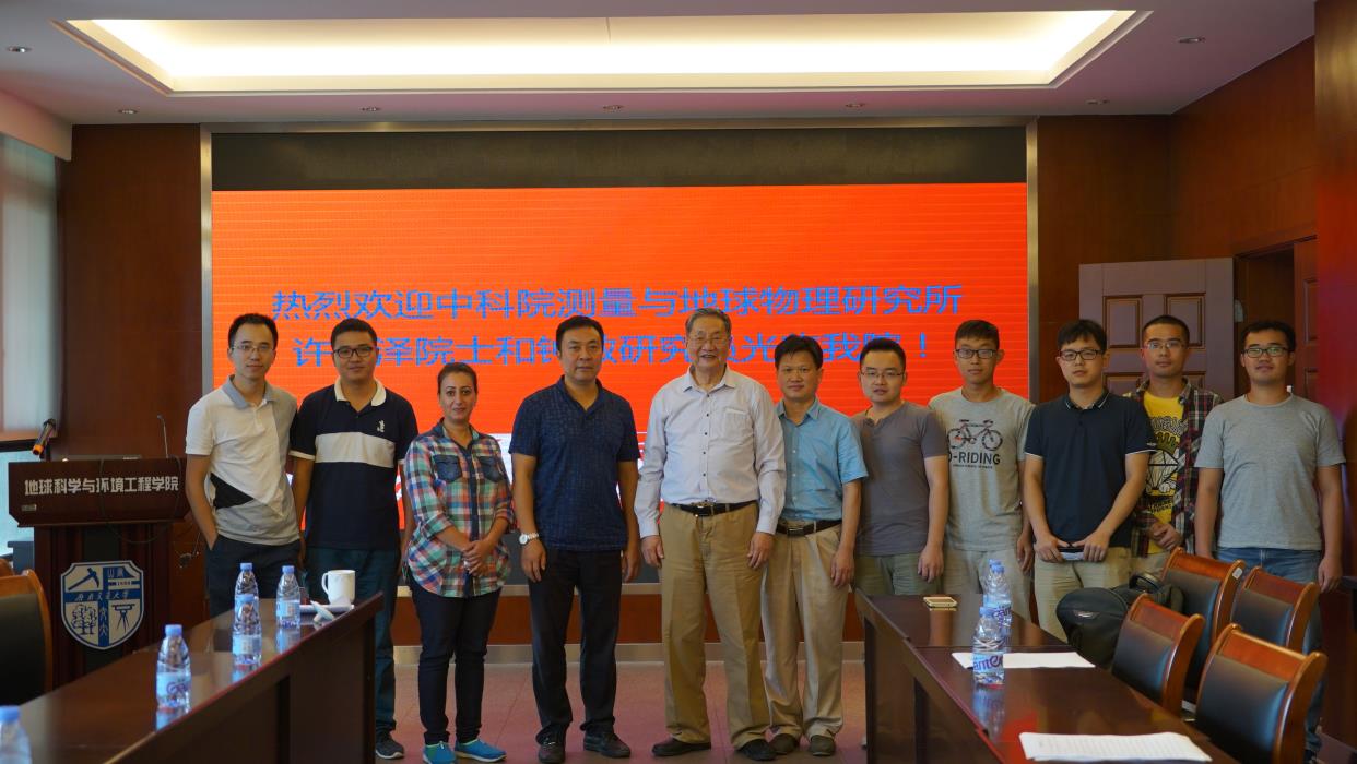 2016年9月7日上午9:00,许厚泽院士继续在X4520做了题为《Development of Gravimeter Research in Wuhan, China》的学术报告,介绍了现有重力测量的技术与仪器,分析了中国研制重力仪器的情况。上午10:30,刘国祥院长为许厚泽院士和钟敏研究员介绍了我校地球科学与环境工程学院的基本情况,重点介绍了InSAR研究团队近年来的科研进展,并听取了许厚泽院士的意见,报告会持续到中午12:00结束。下午16:00,我院博士生谷延超做了题为《Seasonal crustal vertical deformation induced by environmental mass loading in mainland China derived from GPS, GRACE and surface loading models》的学术报告、博士生姜中山做了题为《Fault movement behaviors based on the optimal deep geometry after the Wenchuan earthquake》的学术报告、硕士生余彪做了题为《GRACE重力反演中的不同积分方法比较》的学术报告,许厚泽院士和钟敏研究员都认真聆听并给出了非常中肯的意见,讨论会持续到18:00结束。