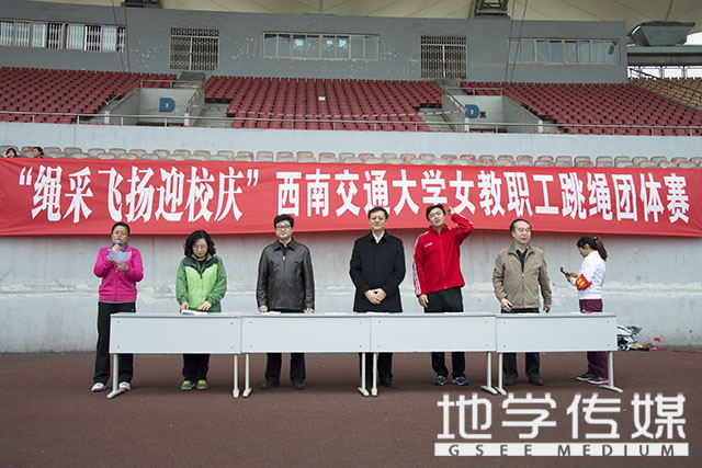 2016年3月8日下午2时许,由校工会与体育部主办的“绳采飞扬迎校庆”女教职工跳绳团体赛在犀浦校区北区体育场隆重举行,共有36个队伍参加本次比赛。本次比赛开幕式由校工会部长陈秀梅主持,出席开幕式的领导嘉宾有:18H
