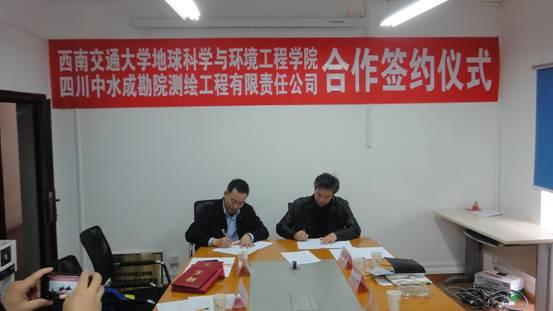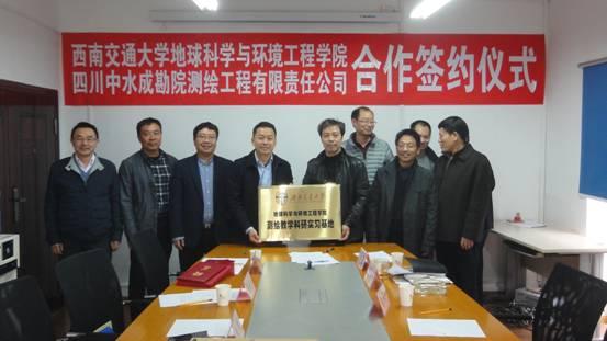 地球科学与环境工程学院与四川中水成勘院测绘工程有限责任公司在成勘院签署共建大学生校外测绘实习基地合作协议,并举行授牌仪式,还为王渊高工和刘菲高工颁发了我院兼职教授聘书。