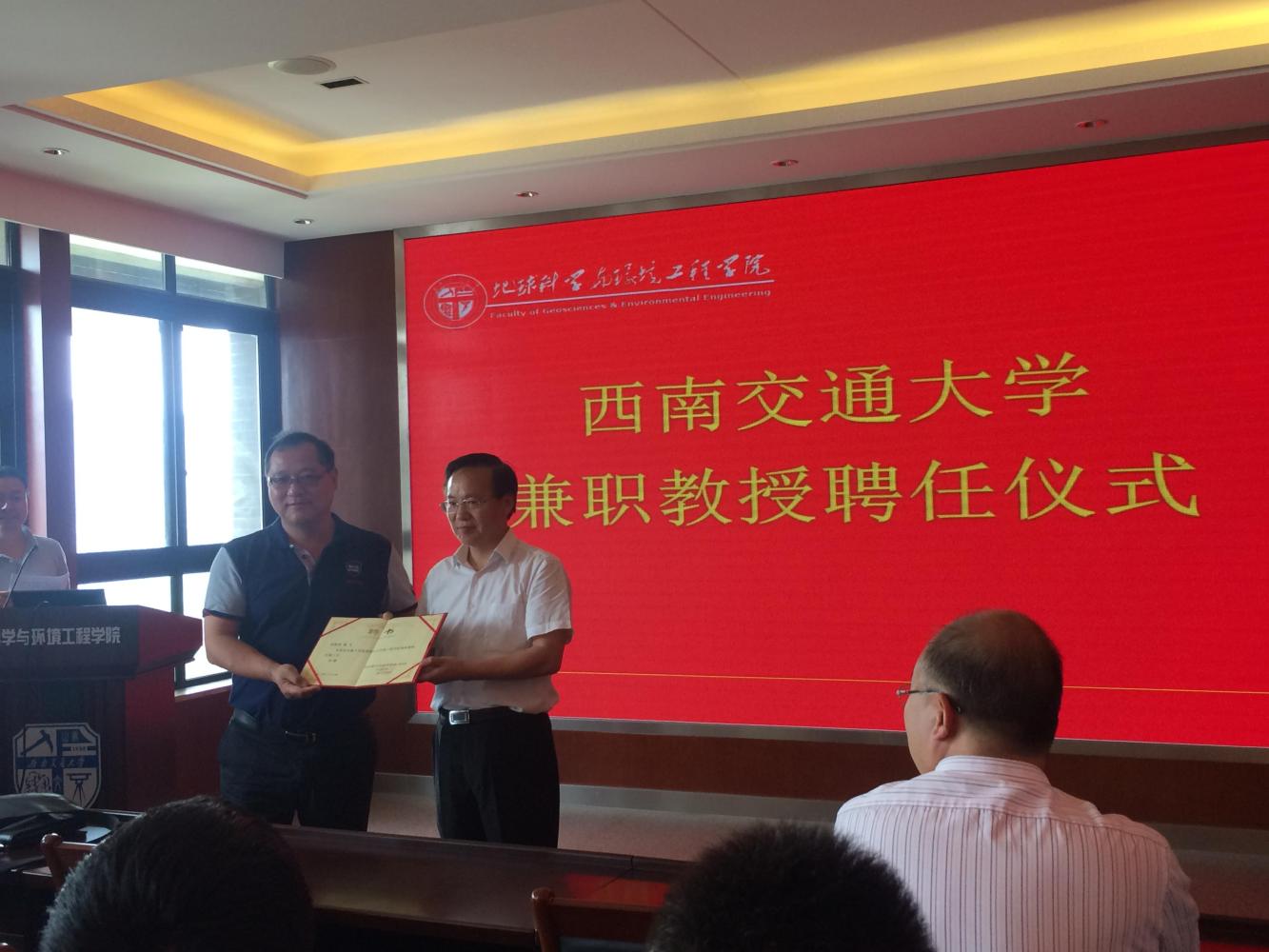 18日下午2点,学院兼职教授聘任仪式在X4520教室举行,聘任仪式由我院执行院长朱庆教授主持,聘请我院地质校友、江苏省锦丰生态食品集团有限公司陈飞董事长为西南交大18H