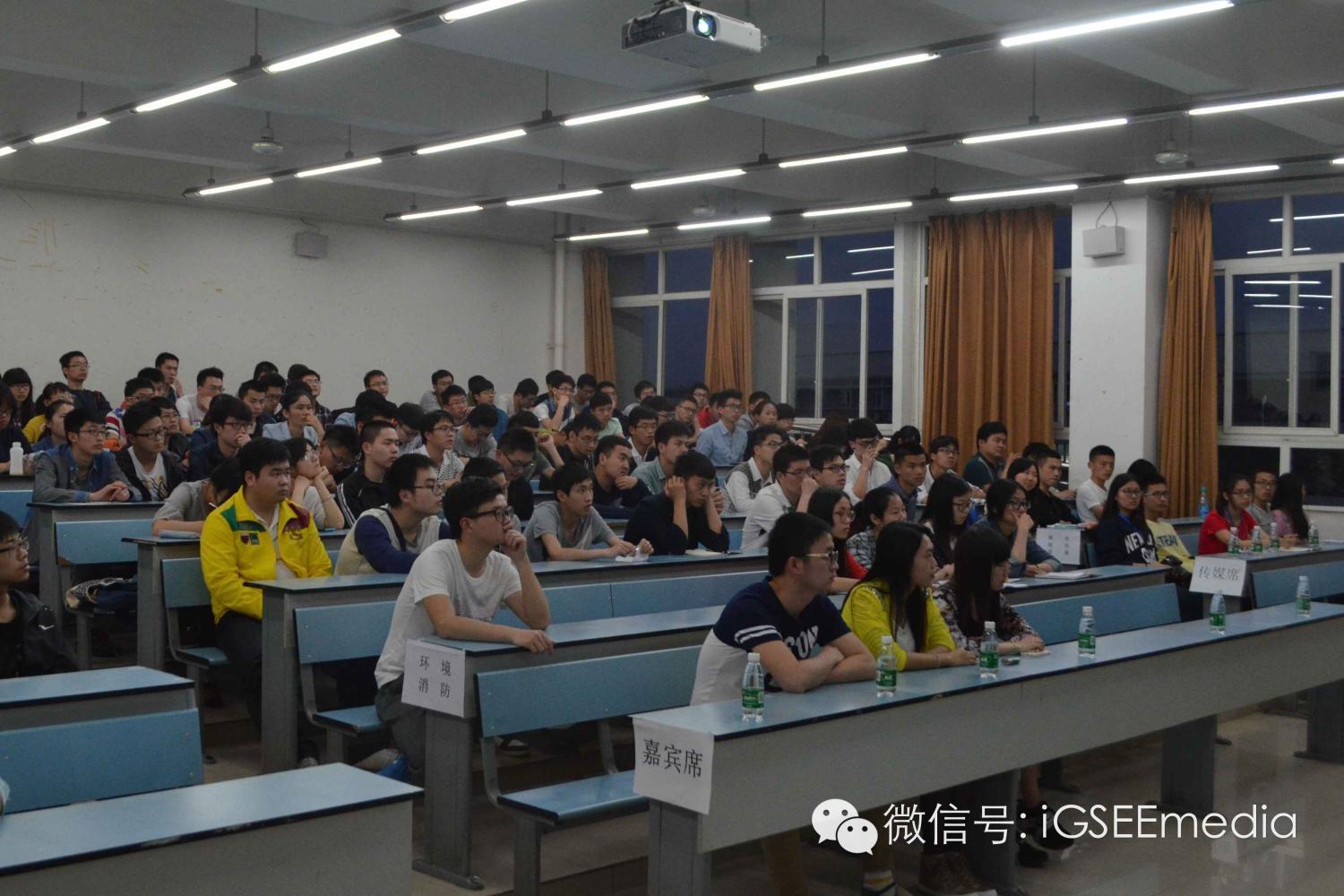 交流会进行到这里,为了让大家能更进一步的了解自己专业方面的问题,自管中心特地分出环境、消防、地质、测绘地信遥感等四间教室,让大四的学长学姐以及特别邀请来的四位研究生学长何杨、李硕宇、陈罗增和刘惠涛分专业与大家进行面对面的交流,更好地为大家答疑解惑。