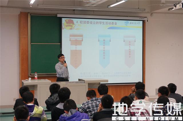 犀浦校区4359教室,校团委办公室主任王蔚老师应邀对地球科学与环境工程学院2014级新生开展入学教育。讲座内容围绕学校团委开设的各类活动和课程,旨在让新生们对学校团委以及第二课堂有一定的了解。18H