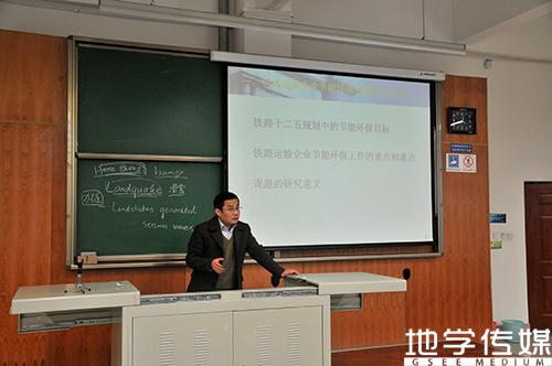 副院长胡卸文教授主持,报告会分别由测绘学科黄丁发教授(博导)、地质学科程谦恭教授(博导)及环境学科黄涛教授(博导、副院长)主讲。