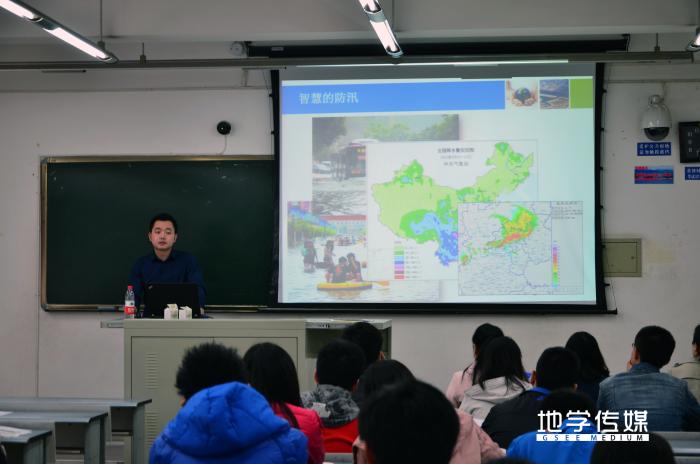 首先是由刘丁博士为我们做了关于智慧城市的报告。刘丁博士首先以一个简单的籍贯问卷调查开场,这种崭新的方式调动起同学们对讲座的兴趣。刘博士在台上快速输入随机抽出的同学的名字和家庭详细所在地,三下五除二,就将做好的EXCEL表格中的数据加载到GIS软件当中,大屏幕上就快速定位出来自全国好几个省份的个同学的家庭所在地,精确到街道。这种将街道乃至门牌号准确的与空间位置相联系的技术在GIS中被称为地理编码技术。随后刘博士又为我们列举的详细的例子说明GIS技术在我们的城市生活中的各种应用。“随着经济的发展,涌入城镇的人数越来越多,已经超过了城市可以承载的能力,我们称之为‘城市病’”,刘丁博士举了很多详细的例子来说明现在城市做面临的问题,比如交通堵塞、私家车的增多、环境问题、就业压力等等,而GIS就是我们治疗“城市病”工具,根据现有的数据和GIS的技术进行空间分析网络分析,优化资源,使资源得到最好的配置,依赖GIS做出分析和辅助决策,无论是企业还是政府还是教育机构,都可以运用GIS做出有利的决策。最后刘博士说“城市,让生活更美好,在座各位会让城市更美好!”给我们无限的鼓舞,激励我们前进。