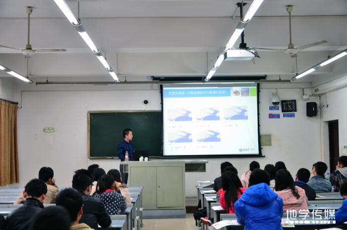 随后由高级产品咨询师白旭阳为我们做了“我们与GIS”的讲座,他说在他从事GIS十年的历程中,觉得最重要的是得有地理意识,这种意识不一定非得在课堂上学,而是贯穿于我们的生活之中。在我们身边很多冗杂的信息,我们很难提取到有用的信息,而GIS一个提取信息的有用工具。随后他举了一个从众多水库中找出目的水库的例子:偶然在网上看见某楼主晒一钓鱼的水库,但是楼主不告诉他们具体地点,他们就利用遥感匹配技术与GIS技术的结合,在四川大大小小的水库中找出与楼主所晒相近的一个,最后如愿以偿的去钓鱼。这个例子虽然就是生活中的一个小李子,但是却透漏着大智慧,一是说明GIS不是多么深奥的东西,就在我们平常的生活中都可以用得上;二是地理意识的重要性,有思维,才能找到方法解决问题。最后白博士叮嘱我们要打好编程基础,熟悉ArcGis软件,学好专业课。