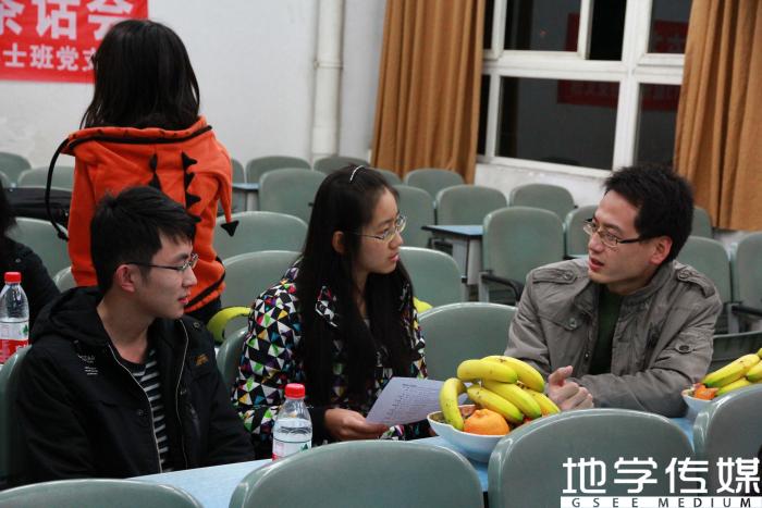 不同年级不同专业的本科生同学积极参与。为了更好地和本科生们进行交流,13级博士班不仅组织了本班同学参加活动,还特地邀请了地质、测绘、环境3个不同专业不同方向的6位博士生师兄与本科生们面对面交流。活动采用按专业分组讨论的茶话会形式,以便针对性地解决不同专业同学的问题进行多角度全方位的讲解。