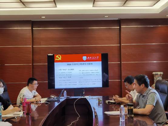 此次专题学习主要就“两会”召开背景、内容及中央领导同志“两会”期间讲话精神进行了深入学习。主要内容如下:(1)此次“两会”是在国际社会依然在努力与疫情斗争的时刻,在常态化疫情防控特殊背景下召开的,同时也是在决胜全面小康、决战脱贫攻坚的收官之年,实现“两个一百年”奋斗目标的历史交汇之年这个关键时间节点所召开的,是一次总结过去、展望未来的重要会议;(2)此次会议听取并讨论了一系列工作情况的报告,通过了相关的提案审查情况报告,讨论了民法典草案及相应的决议、决定等;(3)此次专题会议学习活动主要学习了习近平总书记和李克强总理的讲话精神。