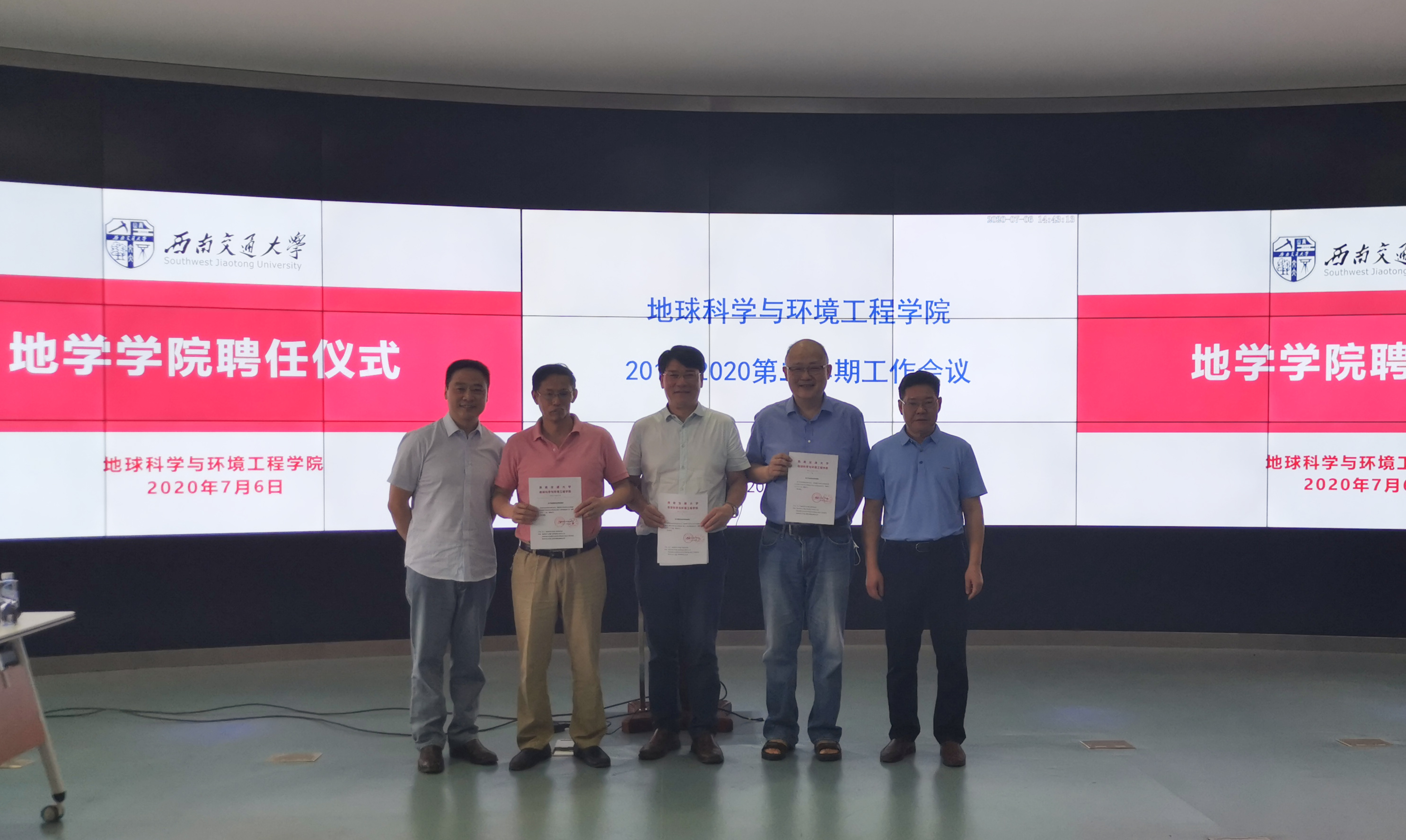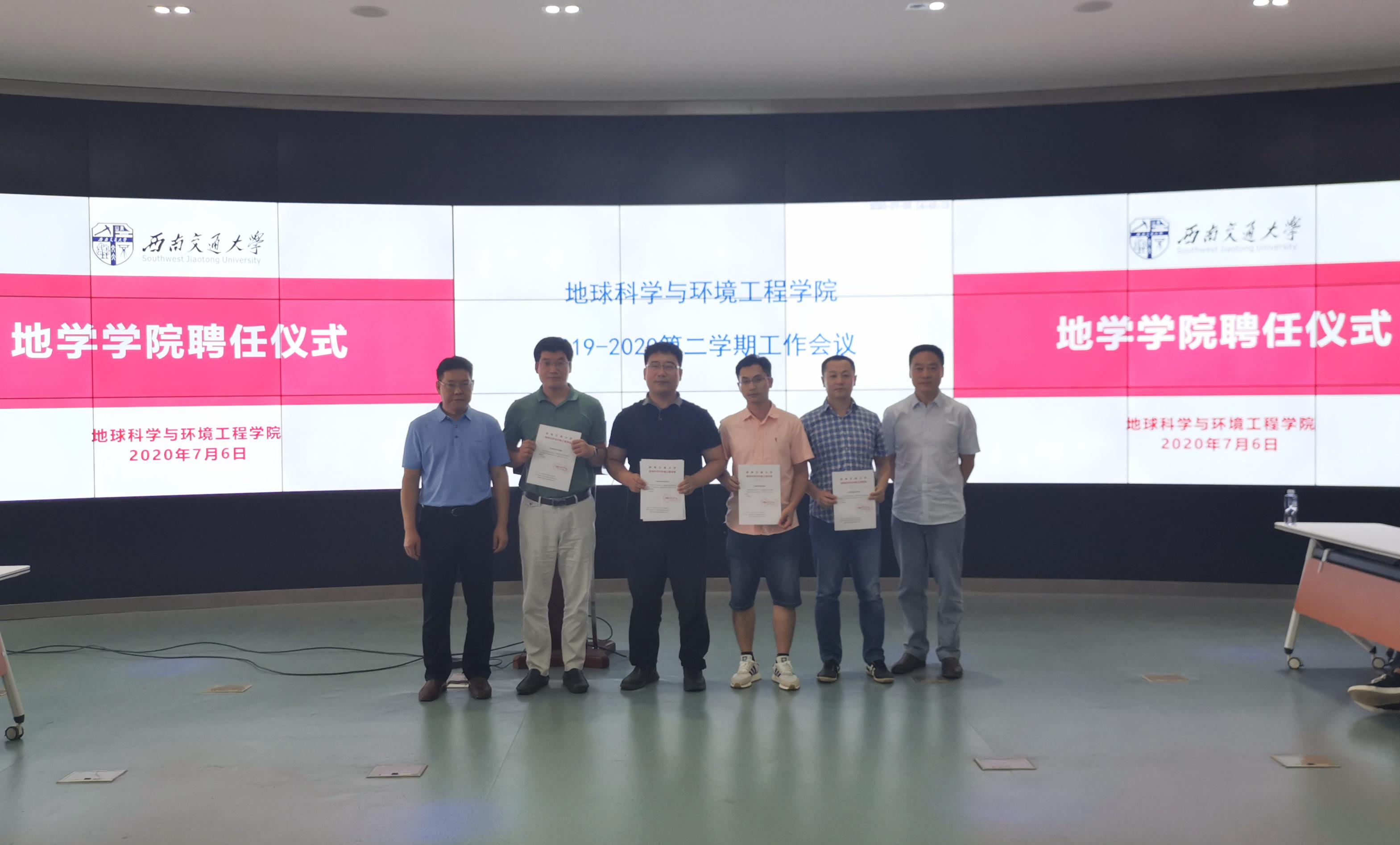 76日,地球科学与环境工程学院于X4243多功能报告厅举行学院新聘任领导聘任仪式暨本学期工作总结大会。学院全体院领导,国地实验室新都基地检测和监测中心主任、副主任,各系系主任、副主任,各系实验室主任,学院本科教学秘书,各系秘书,学院设备秘书,国地实验室秘书,学院机关全体老师出席大会