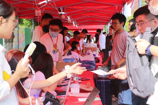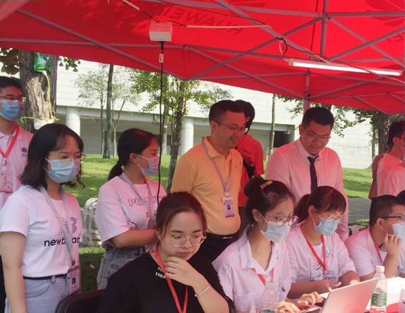 迎新摊位视察,对学院的迎新工作进行了指导,希望18H