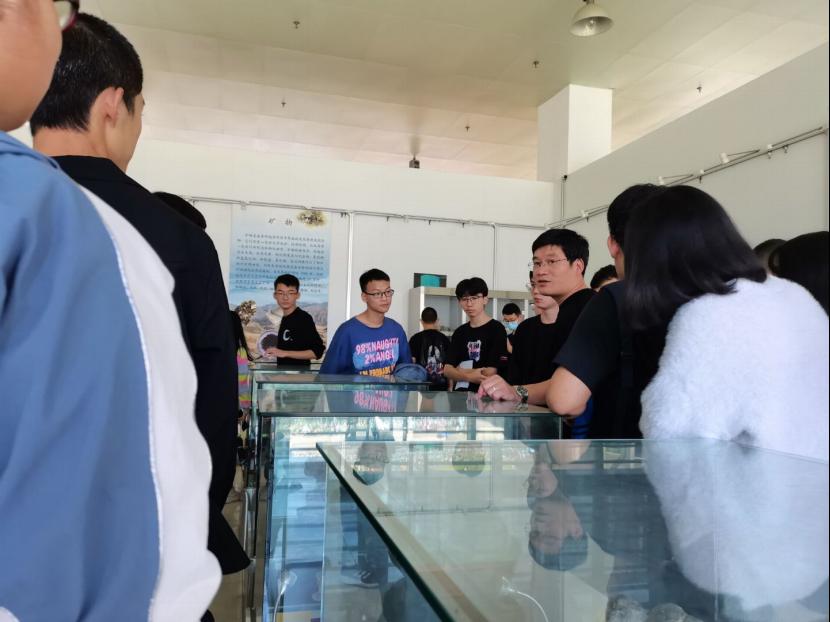 参观完校史馆后,各带队老师带领大家参观地质陈列室,并向大家详细介绍馆中每一块岩石的特征、形成条件和工业用途。对于同学们提出的问题,各位老师更是有问必答,声情并茂地为同学们讲解,同学们也趁此机会解决自己对本专业的困惑并表达对于本专业的憧憬。赵晓彦表示开设《地质资源与地质工程概论》程的目的是让同学们了解地质学科概况,培养同学们地质专业兴趣,夯实大家的专业知识基础,以避免开设专业课程时大家陷入迷茫和焦灼的状态。