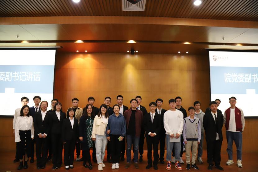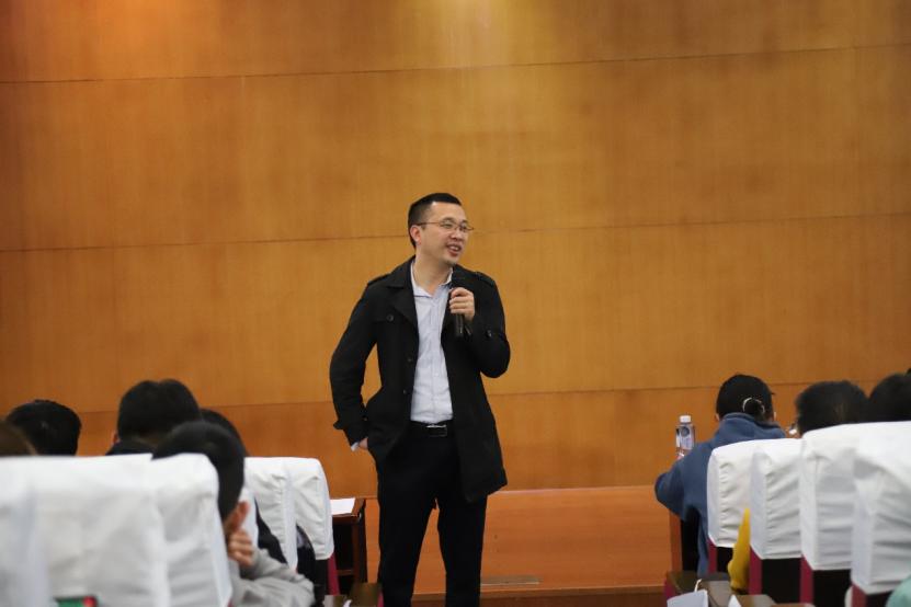 答辩会开始前,傅尤刚讲到,优良的班风学风是大学班级事务建设的永恒主题,也是大学生活的生命线。一个班集体的凝聚力如何,班风如何,班貌如何,体现在班上每一位同学的个人能力,学习成绩,活动参与等方方面面。他通过举例子,生动形象的告知同学们多种提高班级凝聚力的方法,现场掌声阵阵。