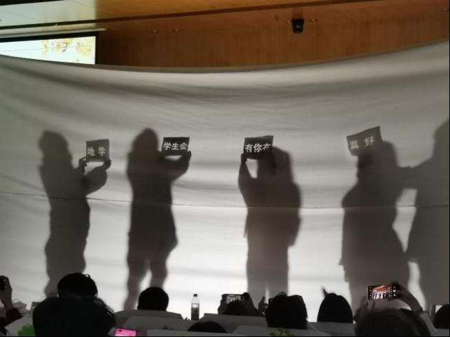 在紧张刺激的趣味游戏环节,同学们积极参与,大会场上一片欢声笑语。大会接近尾声时进入最后一轮抽奖环节,将大会气氛推向了又一个高潮,最终六名幸运儿被抽中并获得精美小礼品。奖品发放完毕后,地新传媒全体成员进行了合影留念。