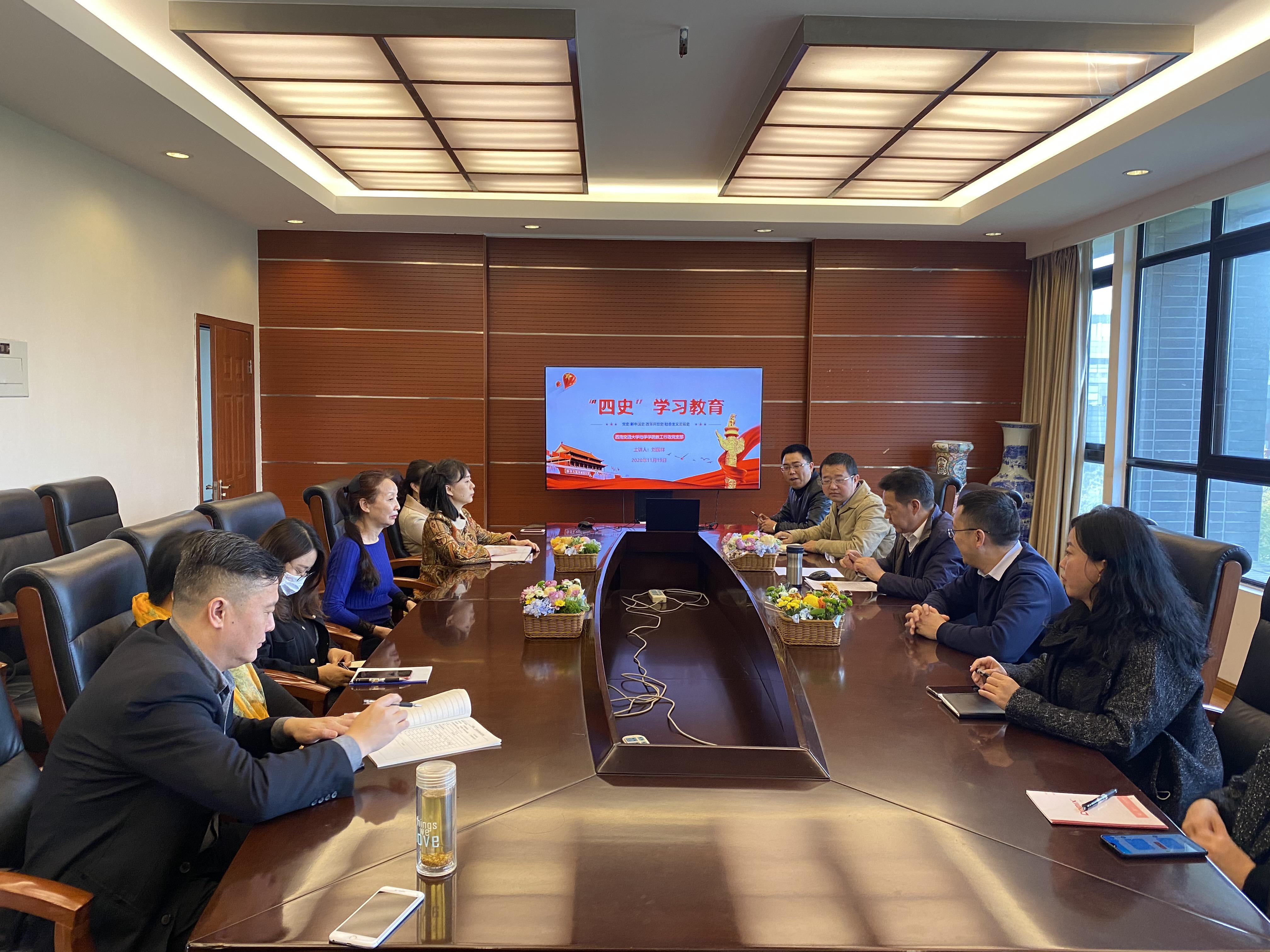 于x4531会议室面向学院机关工作人员开展“四史”学习教育活动,学院党委副书记 副院长许军华、党委副书记傅尤刚,以及机关全体工作人员参加学习会。学习会由18H