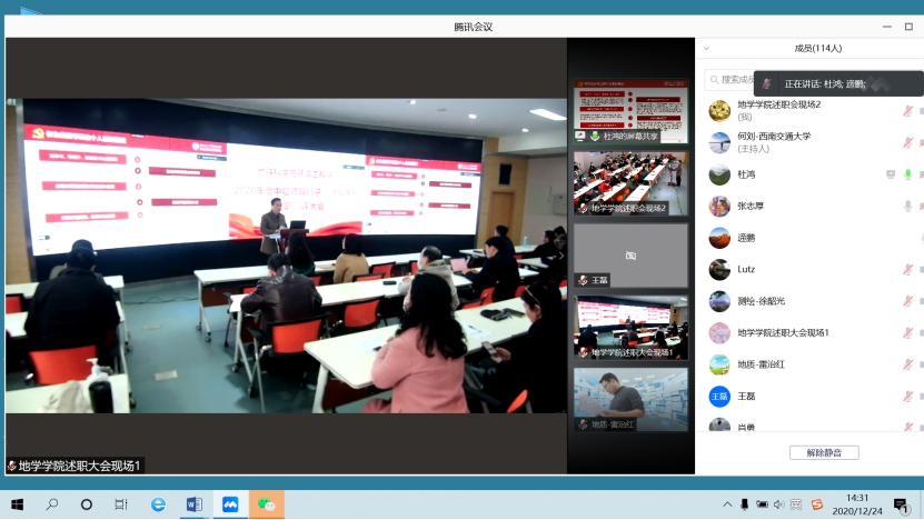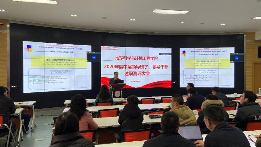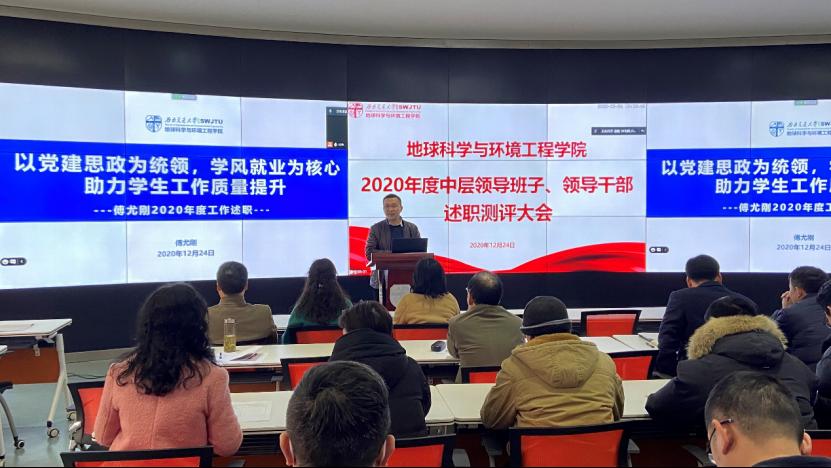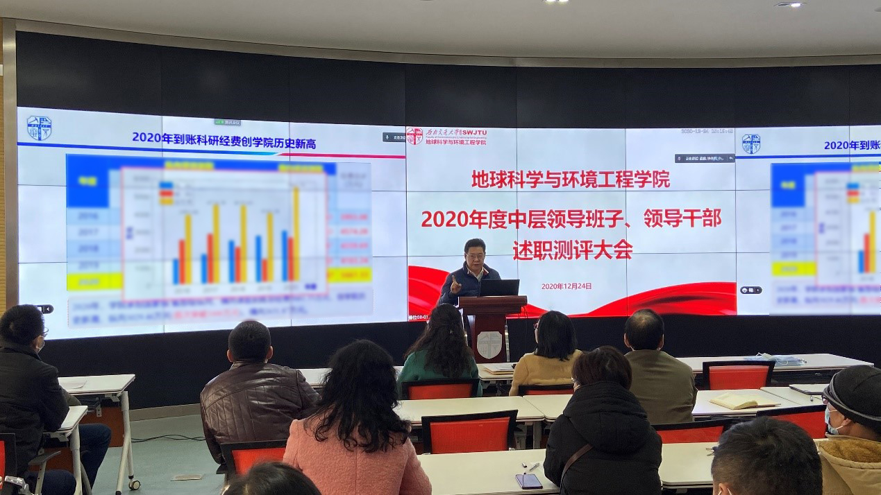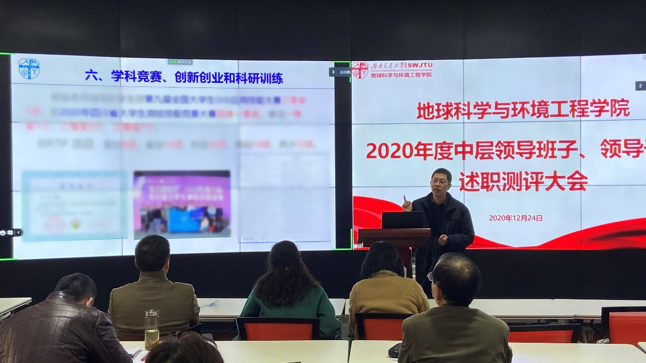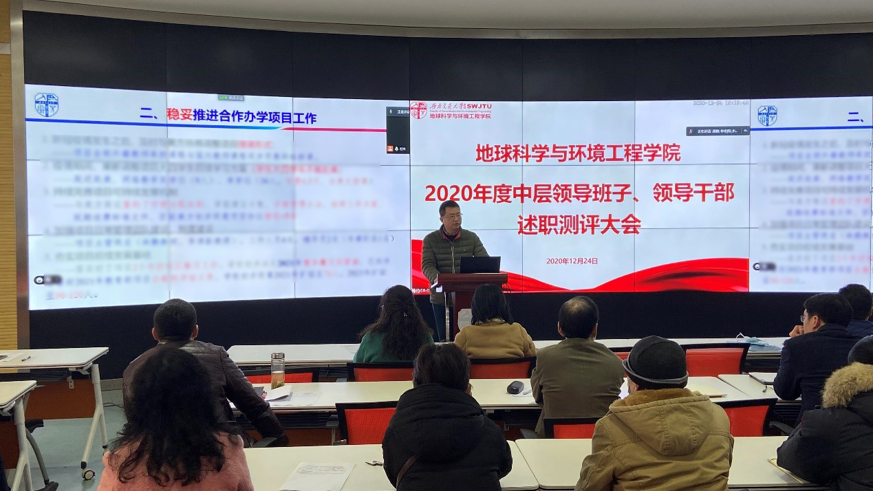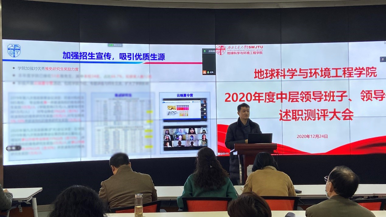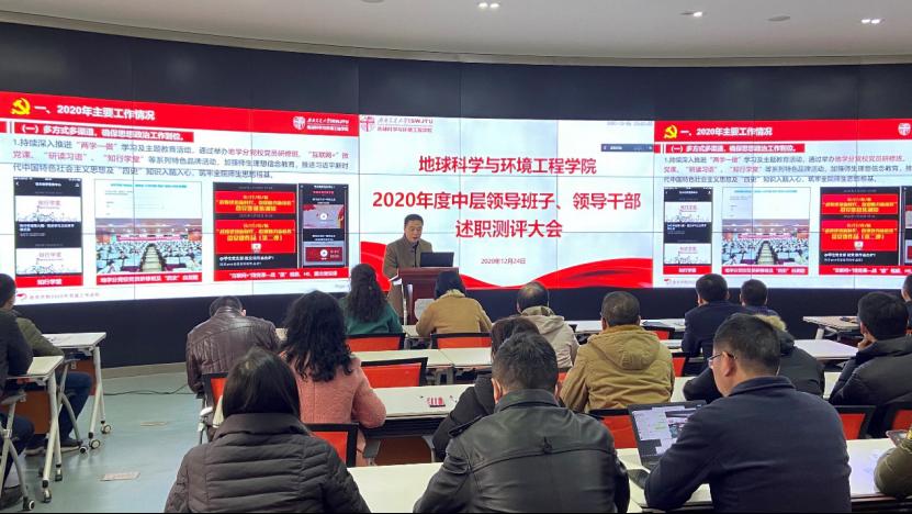12月24日,地球科学与环境工程学院于X4243顺利召开2020年度中层领导班子、领导干部述职测评大会,大会采用线上线下相结合的方式。本次会议由18H