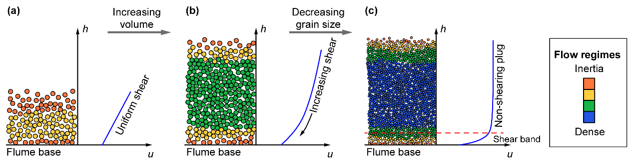 高速远程滑坡形成的颗粒流(碎屑流)的一个重要特征在于,由于源区岩体结构物质的初始组成不同以及失稳后岩体在运动过程中的动力破碎过程,它们的颗粒尺寸范围通常跨越几个数量级。其运动过程包括启动、扩展和堆积三个阶段,通常涉及不同的物理过程。颗粒之间的摩擦和碰撞以及与运动路径的相互作用,是控制高速远程滑坡颗粒流传播与能量耗散的主要因素之一。与高速远程滑坡颗粒流运动过程有关的物理力学机理,主要涉及到以下地球物理学和物理学的关键科学问题:(1)高速远程滑坡高流动性的起源可能是什么物理过程?如何量化和模拟多分散性和破碎过程?(2)如何从理论上量化和描述颗粒尺寸分布在空间和时间的演变及其与流动的耦合?(3)如何从其沉积特征中探究流动的传播机制和特征(质量、起始过程、颗粒-颗粒相互作用的程度等)?这些问题的研究,将有助于最终构建确定其最大运动速度、最远运动距离、最大堆积范围以及对结构的冲击力大小等运动学与动力学参数的本构模型,实现高速远程滑坡灾害的预测预报。因此,高速远程滑坡颗粒流的运动机制,已成为国际滑坡动力学研究领域亟待破解的重大科学问题。
