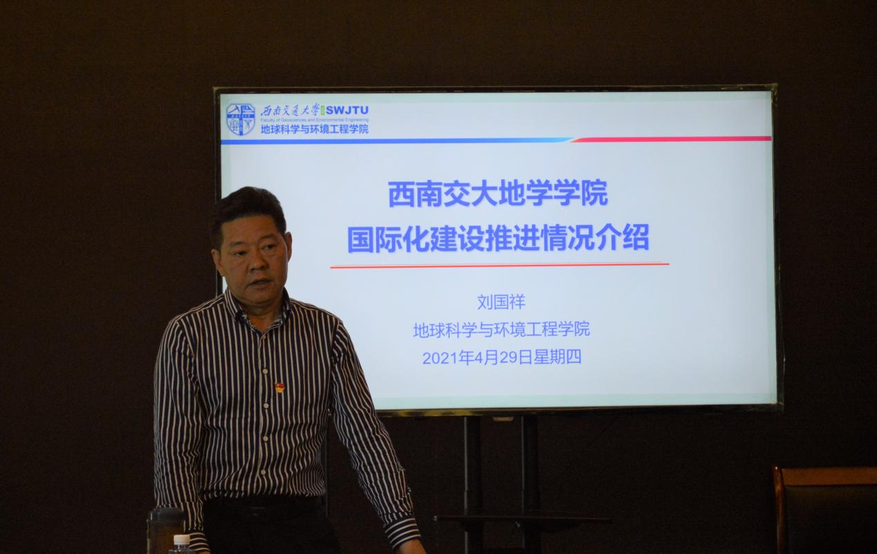国际化建设推进情况,传达杨丹校长对环境学科的重视,要加快推进人才强院、国际化战略,全面推进地学学科登峰计划与学院各项事业加速发展,全面提升地学人才培养质量,形成“大团队,大平台,大项目,大成果”的学科发展局面。