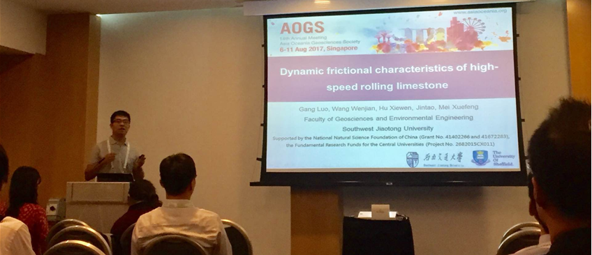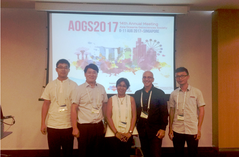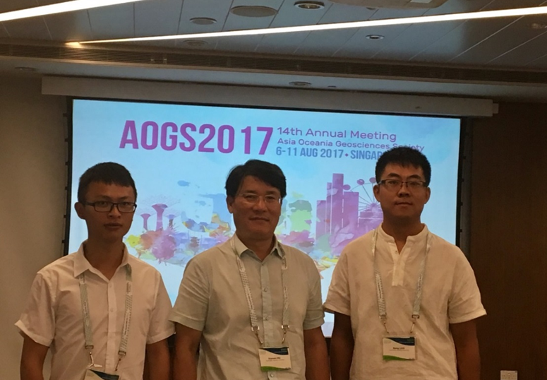 August 5thto 11th, 2017, the 14th Annual meeting of the Asia Oceania Geoscience Symposium (AOGS) was held at New City Convention Center of Singapore (Suntec Convention and Cisie Center), with 2,346 delegates from Asia and Oceania-related countries. A total of 1850 oral reports and more than 500 exhibitions were arranged in the conference. The conference focused on the earth and environment such as atmosphere science, planetary science, marine science, hydrology science, solid earth science, ecological geology science, geoscience interdisciplinary, etc. Prof. Hu Xiewen, Assistant Professor Luo Gang and Dr. Wang Yu attended and presented their papers at the conference.