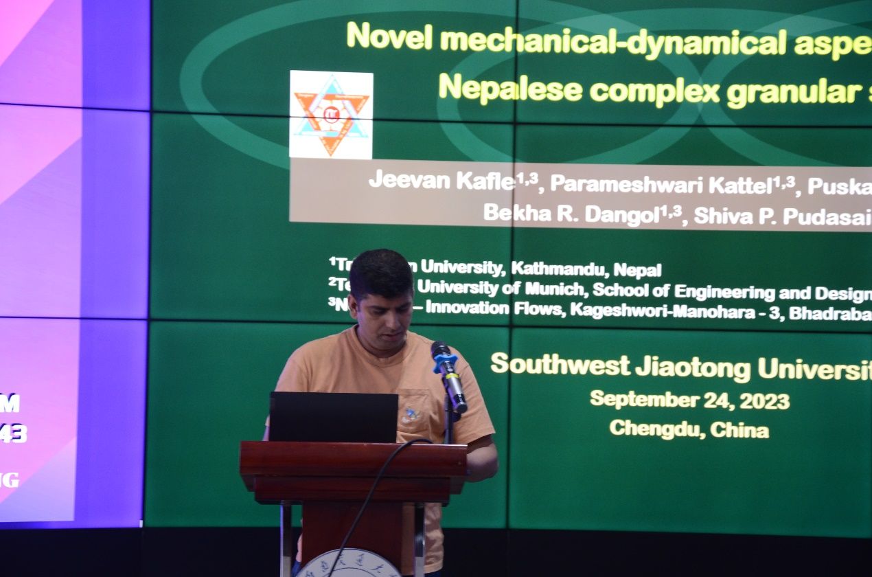 为推动国际化示范学院建设,开阔师生国际视野,提高师生科研能力,营造良好学术氛围,我院程谦恭教授团队特邀来自尼泊尔特里布文大学的Parameshwari Kattel、Puskar Raj Pokhrel和Jeevan Kafle三位副教授开展学术交流活动。三位学者长期从事颗粒流研究,擅长从力学和数学的角度出发,开展滑坡、泥石流等不同类型地质灾害运动演化过程研究。本次活动以线下与线上会议相结合的方式开展,累计70余人次参会。参会人员认真听取学习了3位学者的学术报告,并在会后积极与学者交流,受益匪浅。