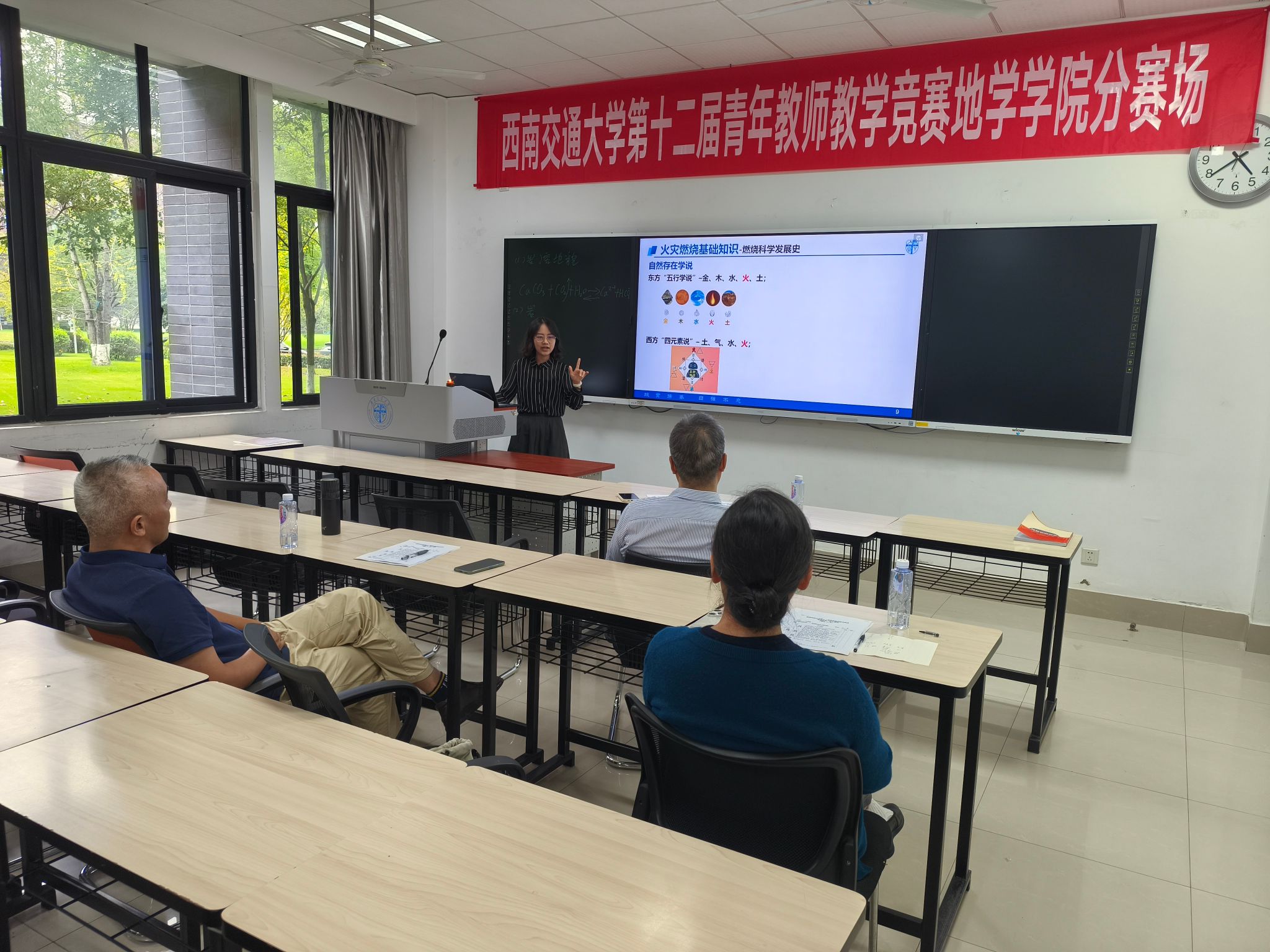 9月30日,学院决赛如期举行。本次竞赛采用“无生上课”的形式,要求参赛教师自选教学节段,在20分钟内完整呈现课堂教学流程,全面考验教师的教学设计、课堂把控与临场应变能力。比赛现场,选手们各展所长:有的以生动案例引入地质知识,将抽象的地学原理转化为直观的生活现象;有的借助测绘技术动态演示,让枯燥的公式推导变得鲜活易懂;还有的结合消防学科实际应用,将“立德树人”理念融入安全知识教学,展现出鲜明的教学特色。评委团围绕 “教学内容、教学组织、教学语言与教态、教学特色”四大维度进行专业评审,既关注教学目标的达成度、教学逻辑的清晰度,也重视教师的语言表达感染力与教学方法的创新性,现场点评精准到位,为参赛教师提供了宝贵的改进方向。