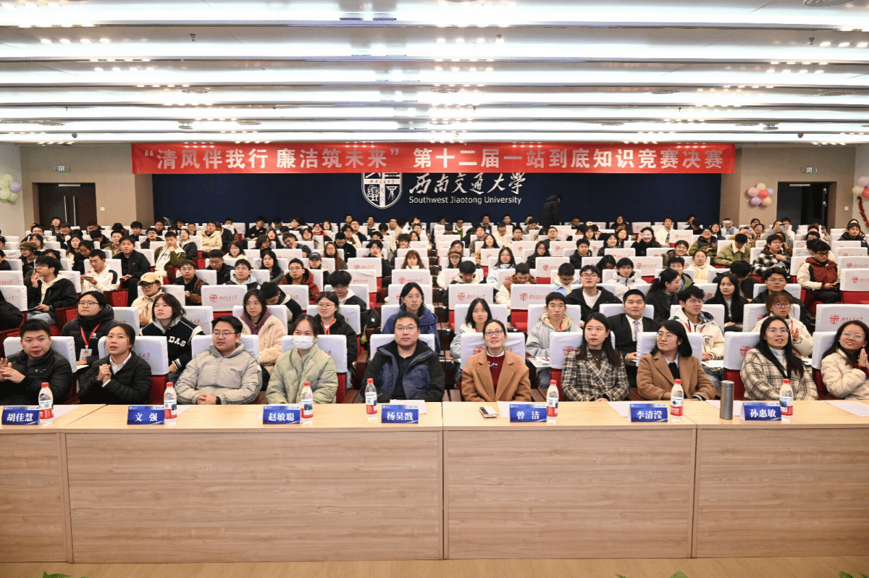 承办的第十二届“一站到底”知识竞赛决赛于犀浦校区图书馆二号报告厅顺利举办。本次大赛以“清风伴我行,廉洁筑未来”为主题,旨在通过知识竞答的形式,全面贯彻党的二十大和二十届历次全会精神,锲而不舍落实中央八项规定精神,引领青年学生守好廉洁底线,让青春行稳致远。